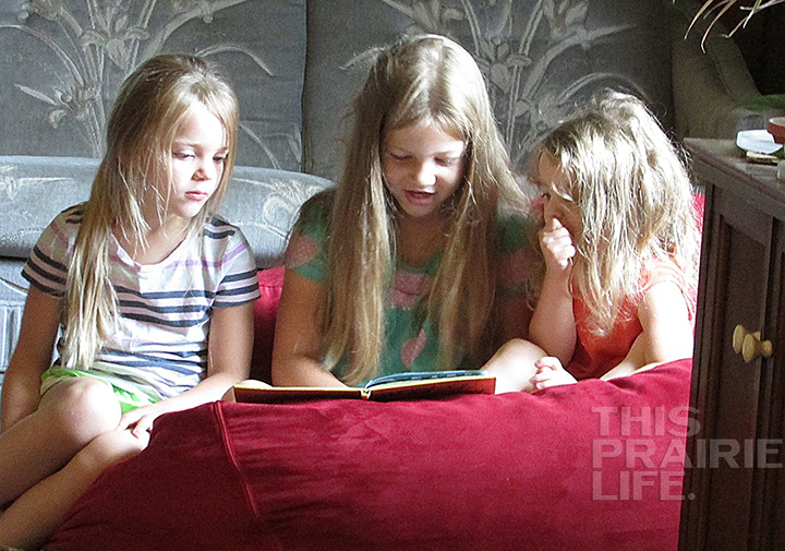 What do you tell a daughter who wants “Wacky Wednesday” when you want breakfast? You say, “Go ask your sister.” And then three girls read it together and you say a small prayer of thankfulness for small blessings and take their picture.