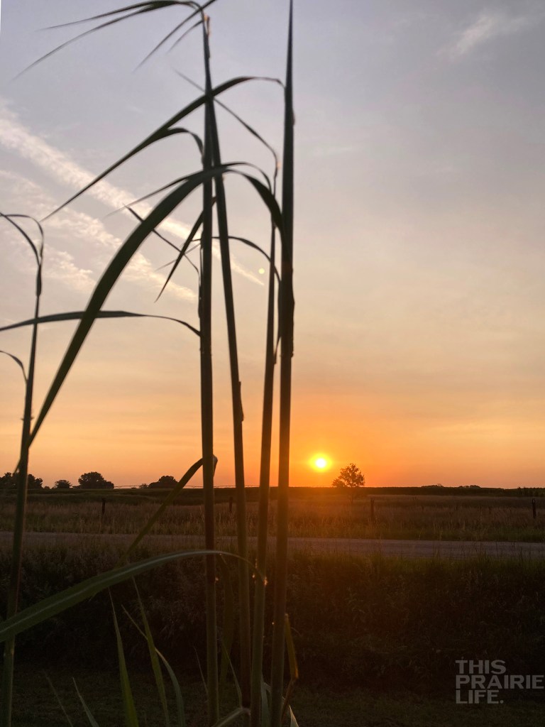 The sun is up, though not by much, and a ways off from us there’s a spray plane with headlights on. I’ve never seen that. It’s cool, the plane silhouetted against the not-quite-bright sky and the very bright lamps on its nose.